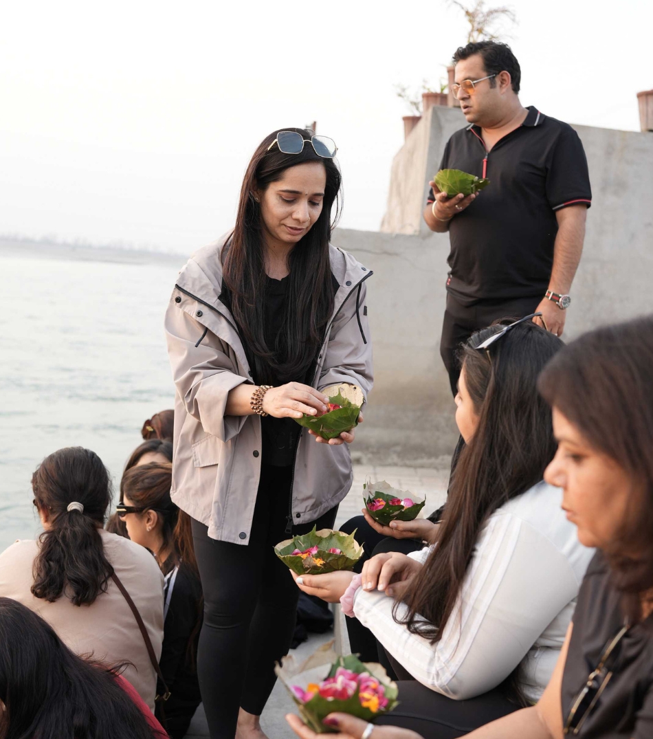 Experience peaceful evening ceremonies by the Ganges, perfect for spiritual reflection, grounding, and inner calm.
